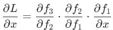 이 함수의 미분은 연쇄 법칙에 따라 각 부분의 미분을 곱해서 전체 미분을 구한다.