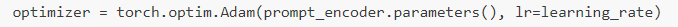 optimizer = torch.optim.Adam(prompt_encoder.parameters(), lr=learning_rate)