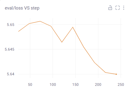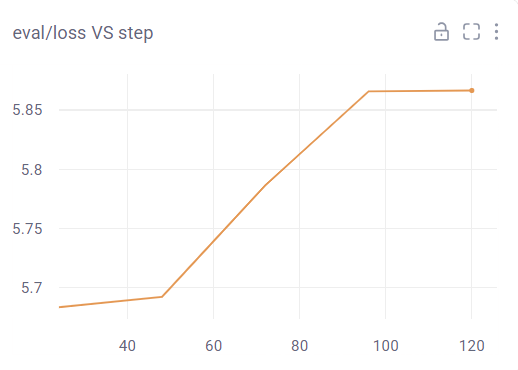 eval의 손실이 학습을 진행하며 점점 증가하는 것을 눈에 띄게 확인할 수 있다. 또한, loss 및 train loss도 학습 진행 중 증가하는 등, 전체적으로 이번 학습은 잘 진행된 학습이라고 볼 수 없다. (만약 loss VS step은 감소하더라도, eval/loss VS step이 감소하지 않는다면 잘못 된 학습이라고 볼 수 있다.) 나는 여기서 학습률(Learning Rate)을 변경해서 학습을 진행해보았다. 변경된 하이퍼파라미터는 아래와 같다.
